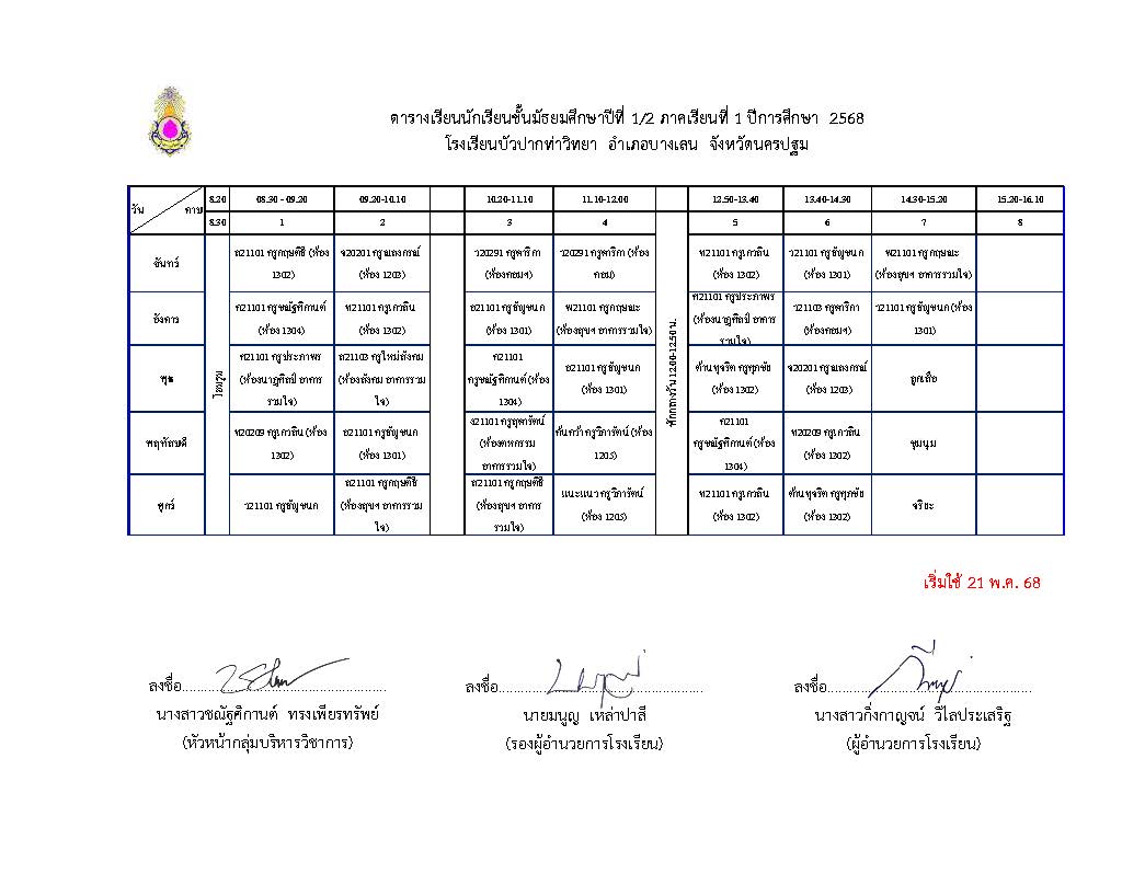 ตารางเรียนนักเรียนชั้นมัธยมศึกษาปีที่ 1