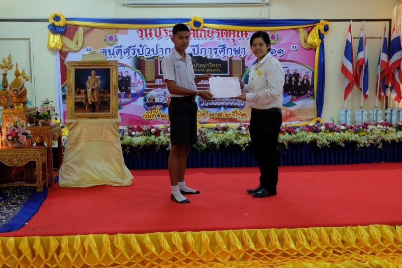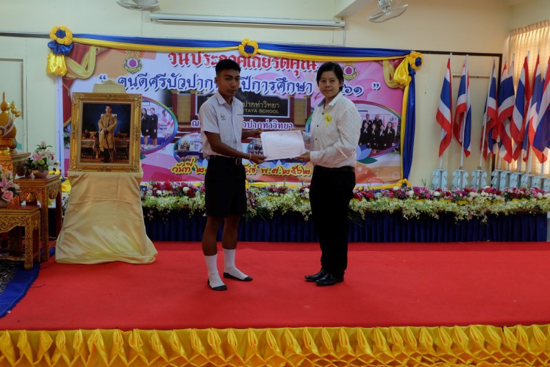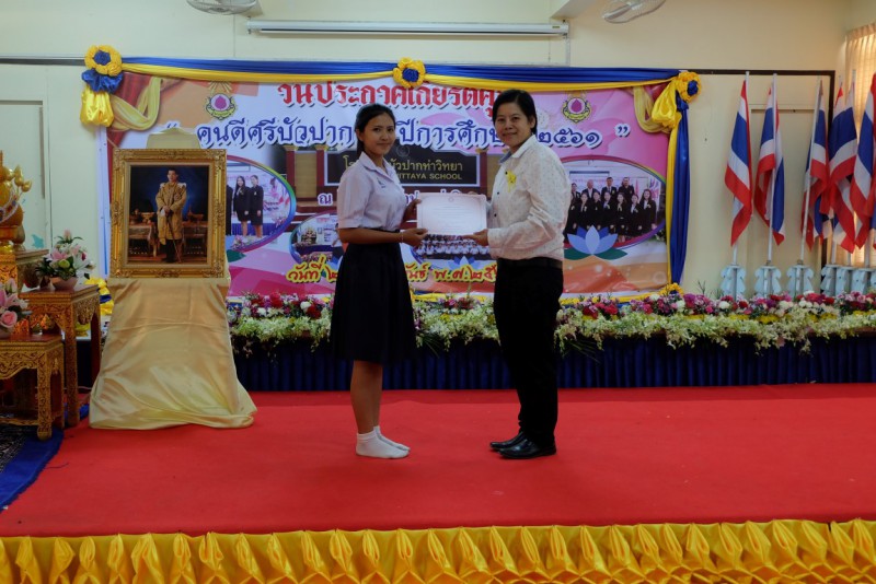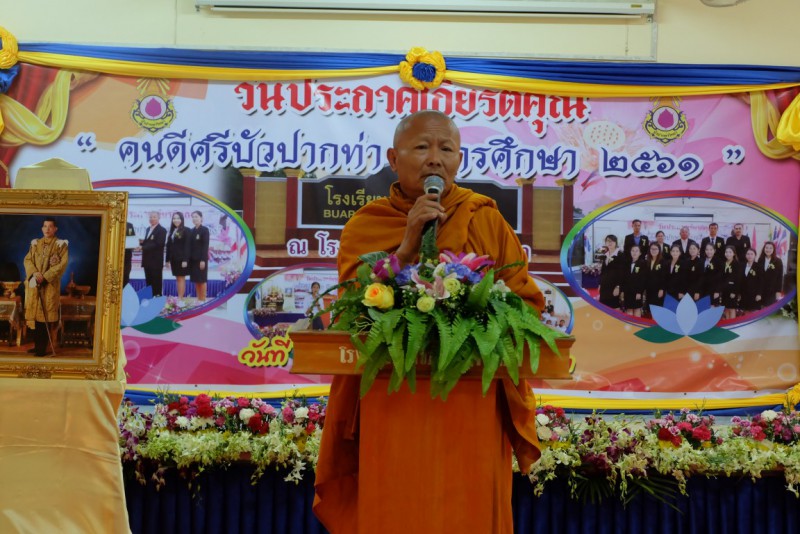 วันที่ 21 กุมภาพันธ์ 2562 เวลา 13.00-15.00 น. โรงเรียนบัวปากท่าวิทยา นำโดยผู้อำนวยการประเจิด อยู่สงค์ คณะครูและนักเรียน ร่วมกิจกรรมวันประกาศเกียรติคุณ "คนดีศรีบัวปากท่า ปีการศึกษา 2561" โดยมีครูและนักเรียนของโรงเรียนบัวปากท่าวิทยา จำนวน 50 คนที่ได้รับการพิจารณาคัดเลือกให้เข้ารับรางวัลคนดีศรีบัวปากท่า ซึ่งแบ่งออกเป็นครูผู้รักษาวินัยดีเด่น จำนวน 4 ราย ครูผู้ปฏิบัติการสอนดีเด่น จำนวน 5 ราย ครูที่ปรึกษาดีเด่น จำนวน 8 ราย ครูที่ปฏิบัติการดูแลช่วยเหลือนักเรียนดีเด่น จำนวน 19 ราย ครูที่มีคุณธรรม จริยธรรมดีเด่น จำนวน 16 ราย ครูผู้สร้างนวัตกรรมการเรียนการสอนดีเด่น จำนวน 2 ราย นักเรียนที่มีผลการเรียนดีเด่น จำนวน 2 ราย นักเรียนที่สร้างชื่อเสียงให้กับโรงเรียน จำนวน 19 ราย นักเรียนที่มีคุณธรรม จริยธรรมดีเด่น จำนวน 13 ราย นักเรียนผู้บำเพ็ญประโยชน์ดีเด่น จำนวน 14 ราย นักเรียนผู้นำดีเด่น จำนวน 7 ราย รวมถึงรางวัลประเภทห้องเรียนดีเด่น ประเภทกลุ่มสาระการเรียนรู้ดีเด่น ประเภทชุมชนที่สนับสนุนการศึกษาดีเด่น และประเภทคณะกรรมการสถานศึกษาดีเด่น เพื่อส่งเสริมให้ครูและนักเรียนปฏิบัติตนเป็นแบบอย่างที่ดีให้กับบุคคลอื่น และประกาศเกียรติคุณ ครูและนักเรียนที่ทำคุณงามความดีให้เป็นแบบอย่างที่ดีแก่ชุมชนและสังคม |