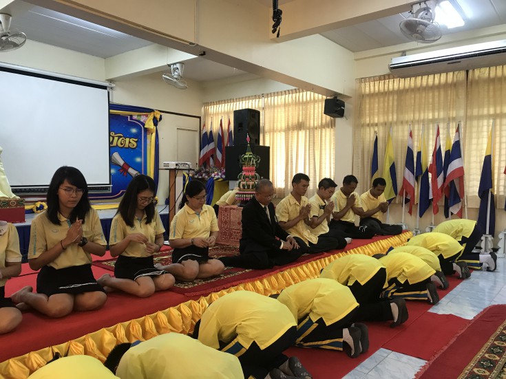 วันที่ 14-15 พฤษภาคม 2562 โรงเรียนบัวปากท่าวิทยา นำโดยผู้อำนวยการประเจิด อยู่สงค์ และคณะครู จัดกิจกรรมปฐมนิเทศนักเรียนชั้นมัธยมศึกษาปีที่ 1 และ 4 ปีการศึกษา 2562 โดยมีผู้อำนวยการประเจิด อยู่สงค์ เป็นประธานในพิธีฝ่ายฆราวาส และพระครูนวกิจโกศล เป็นประธานในพิธีฝ่ายสงฆ์ โดยมีกิจกรรมผูกข้อมือรับขวัญนักเรียนจากคณะครู กิจกรรมพัฒนาทักษะชีวิต กิจกรรมนันทนาการเตรียมความพร้อม กิจกรรมเรียนรู้ฝ่ายบริหารของโรงเรียนรวมถึงเรียนรู้ระเบียบวินัยจากฝ่ายกิจการนักเรียน การจำลองสถานการณ์การปฏิบัติกิจวัตรประจำวัน เพื่อแนะนำแนวทางการปฏิบัติตนของนักเรียน รวมถึงกิจกรรมกีฬาสัมพันธ์และกิจกรรมสานสัมพันธ์ครูและเพื่อนนักเรียน เพื่อสร้างความรัก ความสามัคคีร่วมกัน อีกทั้งยังได้รับการตรวจเยี่ยม นิเทศติดตามการเตรียมความพร้อมก่อนเปิดภาคเรียน ประจำปีการศึกษา 2562 นำโดยนายบำรุง เสียงเพาะดี รองผู้อำนวยการสำนักงานเขตพื้นที่การศึกษามัธยมศึกษา เขต 9 รักษาราชการแทนผู้อำนวยการสำนักงานเขตพื้นที่การศึกษามัธยมศึกษา เขต 9 ซึ่งคณะกรรมการให้การตรวจเยี่ยม นิเทศติดตาม เพื่อสร้างขวัญกำลังใจ ติดตามให้ความช่วยเหลือสนับสนุนโรงเรียนในการเตรียมความพร้อมก่อนเปิดภาคเรียน |