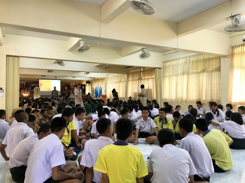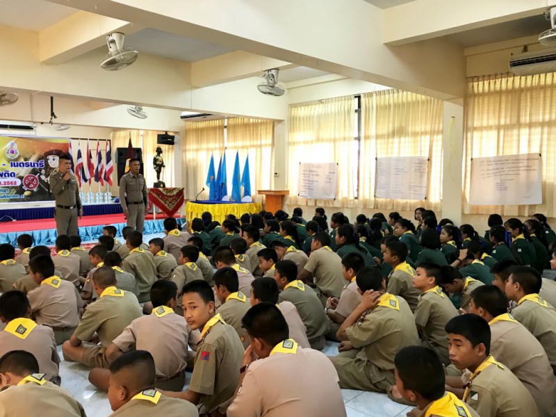 วันที่ 20 สิงหาคม 2562 เวลา 09.00-12.00 น. โรงเรียนบัวปากท่าวิทยา นำโดยผู้อำนวยการประเจิด อยู่สงค์ คณะครู และนักเรียน ได้จัดโครงการฝึกอบรมลูกเสือ-เนตรนารี ต้านภัยยาเสพติด โดยได้รับความอนุเคราะห์จาก พ.ต.ท.รถพร แร่ศรีจันทร์ สวป.สภ.บางหลวง เป็นประธานในพิธี และ ร.ต.อ.ทวีเกียรติ แย้มพรชัย รอง สวป.สภ.บางหลวง รวมถึง ด.ต.ประจวบ เรียนศรี เจ้าหน้าที่ตำรวจ สภ.บางหลวง เป็นวิทยากรบรรยาย เพื่อให้นักเรียนเกิดความตระหนักถึงพิษภัยจากยาเสพติดและร่วมกันเป็นพลังในการป้องกันแก้ไข เฝ้าระวังปัญหายาเสพติดอย่างจริงจังและต่อเนื่อง เพื่อให้การเอาชนะยาเสพติดได้ผลอย่างยั่งยืน |