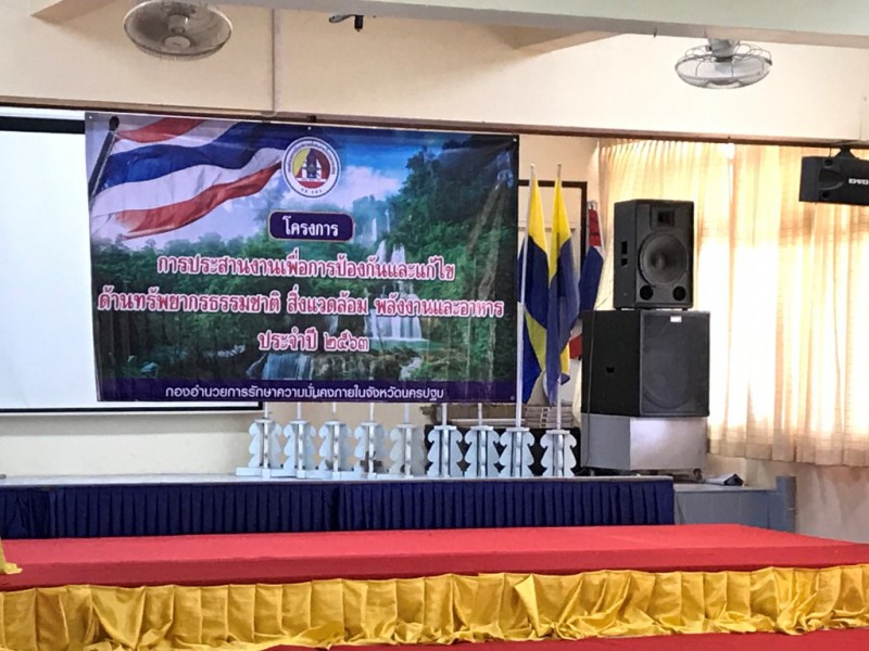 วันที่ 13 กุมภาพันธ์ 2563 กองอำนวยการรักษาความมั่นคงภายในจังหวัดนครปฐม ได้จัดการฝึกอบรม โครงการการป้องกันและฟื้นฟูป่าไม้และแก้ไขปัญหาด้านสิ่งแวดล้อม กิจกรรมการผนึกกำลังเพื่อป้องกันและแก้ไขปัญหาด้านสิ่งแวดล้อมพลังงานและอาหาร ณ โรงเรียนบัวปากท่าวิทยา ซึ่งได้รับเกียรติจากคุณปัญจพัฒน์ เกียรติไพบูลย์ นายกองค์การบริหารส่วนตำบลบัวปากท่า เป็นประธานในพิธี โดยมีกิจกรรมการบรรยาย การสาธิตการเลี้ยงไส้เดือน เพื่อผลิตเป็นปุ๋ยมูลไส้เดือน และการจัดการขยะในครัวเรือน เพื่อป้องกันและแก้ไขปัญหาด้านสิ่งแวดล้อม ตามหลักของปรัชญาเศรษฐกิจพอเพียง |