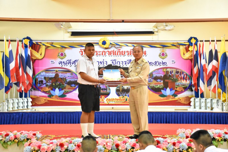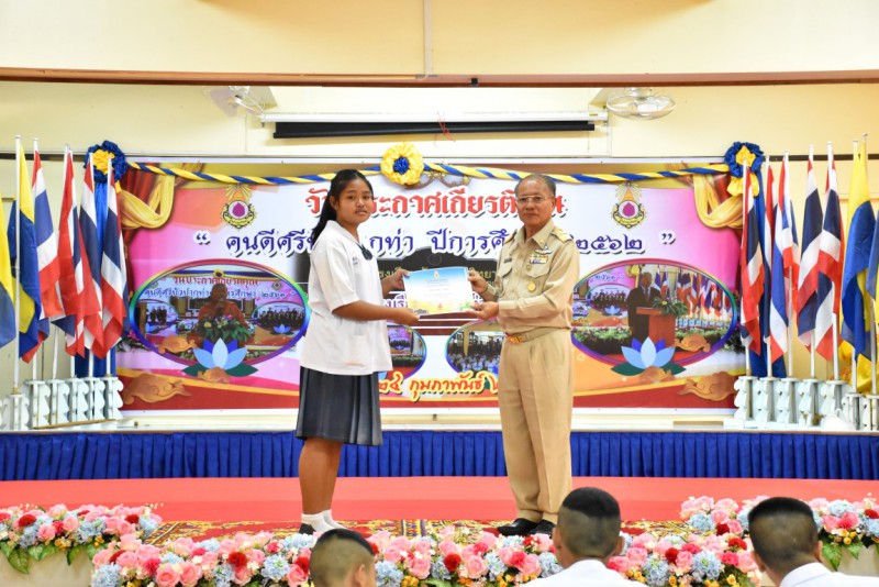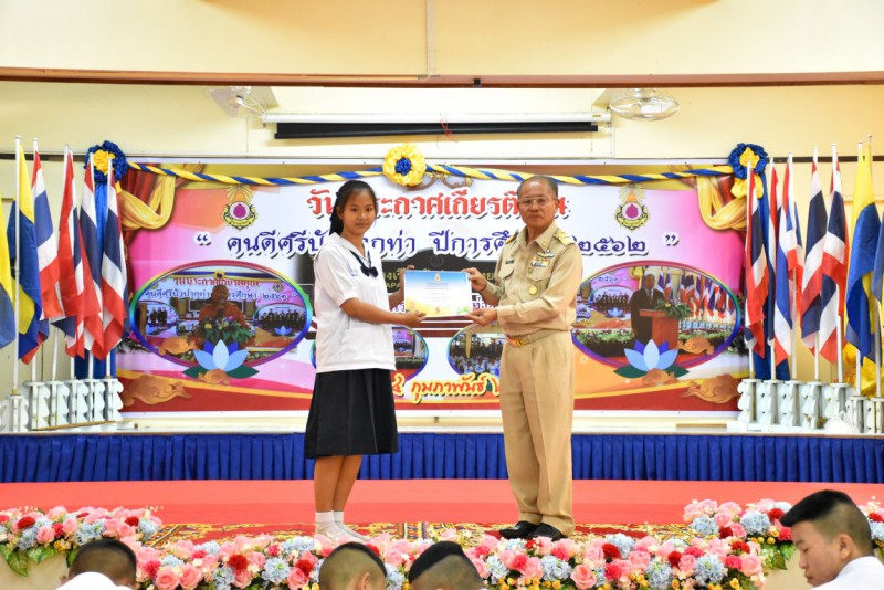 วันที่ 24 กุมภาพันธ์ 2563 เวลา 13.00-15.00 น. โรงเรียนบัวปากท่าวิทยา นำโดยผู้อำนวยการประเจิด อยู่สงค์ คณะครูและนักเรียน ร่วมกิจกรรมวันประกาศเกียรติคุณ "คนดีศรีบัวปากท่า ปีการศึกษา 2562" โดยมีครูและนักเรียนของโรงเรียนบัวปากท่าวิทยา จำนวน 155 ราย ที่ได้รับการพิจารณาคัดเลือกให้เข้ารับรางวัลคนดีศรีบัวปากท่า ซึ่งแบ่งออกเป็นครูผู้รักษาวินัยดีเด่น จำนวน 6 ราย ครูผู้ปฏิบัติงานดีเด่น จำนวน 16 ราย ครูที่ปรึกษาดีเด่น จำนวน 7 ราย ครูที่ปฏิบัติการดูแลช่วยเหลือนักเรียนดีเด่น จำนวน 19 ราย ครูที่มีคุณธรรม จริยธรรมดีเด่น จำนวน 19 ราย ครูผู้สร้างนวัตกรรมการเรียนการสอนดีเด่น จำนวน 2 ราย นักเรียนที่มีผลการเรียนดีเด่น จำนวน 4 ราย นักเรียนที่สร้างชื่อเสียงให้กับโรงเรียน จำนวน 27 ราย นักเรียนที่มีคุณธรรม จริยธรรมดีเด่น จำนวน 44 ราย นักเรียนผู้บำเพ็ญประโยชน์ดีเด่น จำนวน 40 ราย นักเรียนผู้นำดีเด่น จำนวน 11 ราย รวมถึงรางวัลประเภทห้องเรียนดีเด่น ประเภทกลุ่มสาระการเรียนรู้ดีเด่น ประเภทศิษย์เก่าดีเด่น ประเภทชุมชนที่สนับสนุนการศึกษาดีเด่น และประเภทคณะกรรมการสถานศึกษาดีเด่น เพื่อส่งเสริมให้ครูและนักเรียนปฏิบัติตนเป็นแบบอย่างที่ดีให้กับบุคคลอื่น และประกาศเกียรติคุณ ครูและนักเรียนที่ทำคุณงามความดีให้เป็นแบบอย่างที่ดีแก่ชุมชนและสังคม |