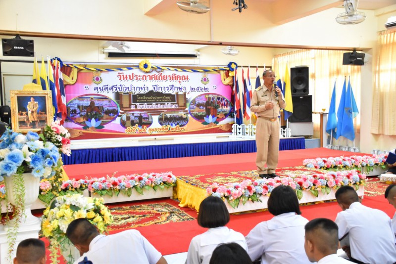วันที่ 24 กุมภาพันธ์ 2563 เวลา 13.00-15.00 น. โรงเรียนบัวปากท่าวิทยา นำโดยผู้อำนวยการประเจิด อยู่สงค์ คณะครูและนักเรียน ร่วมกิจกรรมวันประกาศเกียรติคุณ "คนดีศรีบัวปากท่า ปีการศึกษา 2562" โดยมีครูและนักเรียนของโรงเรียนบัวปากท่าวิทยา จำนวน 155 ราย ที่ได้รับการพิจารณาคัดเลือกให้เข้ารับรางวัลคนดีศรีบัวปากท่า ซึ่งแบ่งออกเป็นครูผู้รักษาวินัยดีเด่น จำนวน 6 ราย ครูผู้ปฏิบัติงานดีเด่น จำนวน 16 ราย ครูที่ปรึกษาดีเด่น จำนวน 7 ราย ครูที่ปฏิบัติการดูแลช่วยเหลือนักเรียนดีเด่น จำนวน 19 ราย ครูที่มีคุณธรรม จริยธรรมดีเด่น จำนวน 19 ราย ครูผู้สร้างนวัตกรรมการเรียนการสอนดีเด่น จำนวน 2 ราย นักเรียนที่มีผลการเรียนดีเด่น จำนวน 4 ราย นักเรียนที่สร้างชื่อเสียงให้กับโรงเรียน จำนวน 27 ราย นักเรียนที่มีคุณธรรม จริยธรรมดีเด่น จำนวน 44 ราย นักเรียนผู้บำเพ็ญประโยชน์ดีเด่น จำนวน 40 ราย นักเรียนผู้นำดีเด่น จำนวน 11 ราย รวมถึงรางวัลประเภทห้องเรียนดีเด่น ประเภทกลุ่มสาระการเรียนรู้ดีเด่น ประเภทศิษย์เก่าดีเด่น ประเภทชุมชนที่สนับสนุนการศึกษาดีเด่น และประเภทคณะกรรมการสถานศึกษาดีเด่น เพื่อส่งเสริมให้ครูและนักเรียนปฏิบัติตนเป็นแบบอย่างที่ดีให้กับบุคคลอื่น และประกาศเกียรติคุณ ครูและนักเรียนที่ทำคุณงามความดีให้เป็นแบบอย่างที่ดีแก่ชุมชนและสังคม |