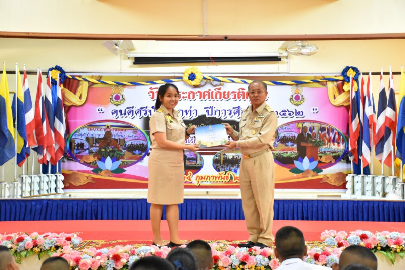 วันที่ 24 กุมภาพันธ์ 2563 เวลา 13.00-15.00 น. โรงเรียนบัวปากท่าวิทยา นำโดยผู้อำนวยการประเจิด อยู่สงค์ คณะครูและนักเรียน ร่วมกิจกรรมวันประกาศเกียรติคุณ "คนดีศรีบัวปากท่า ปีการศึกษา 2562" โดยมีครูและนักเรียนของโรงเรียนบัวปากท่าวิทยา จำนวน 155 ราย ที่ได้รับการพิจารณาคัดเลือกให้เข้ารับรางวัลคนดีศรีบัวปากท่า ซึ่งแบ่งออกเป็นครูผู้รักษาวินัยดีเด่น จำนวน 6 ราย ครูผู้ปฏิบัติงานดีเด่น จำนวน 16 ราย ครูที่ปรึกษาดีเด่น จำนวน 7 ราย ครูที่ปฏิบัติการดูแลช่วยเหลือนักเรียนดีเด่น จำนวน 19 ราย ครูที่มีคุณธรรม จริยธรรมดีเด่น จำนวน 19 ราย ครูผู้สร้างนวัตกรรมการเรียนการสอนดีเด่น จำนวน 2 ราย นักเรียนที่มีผลการเรียนดีเด่น จำนวน 4 ราย นักเรียนที่สร้างชื่อเสียงให้กับโรงเรียน จำนวน 27 ราย นักเรียนที่มีคุณธรรม จริยธรรมดีเด่น จำนวน 44 ราย นักเรียนผู้บำเพ็ญประโยชน์ดีเด่น จำนวน 40 ราย นักเรียนผู้นำดีเด่น จำนวน 11 ราย รวมถึงรางวัลประเภทห้องเรียนดีเด่น ประเภทกลุ่มสาระการเรียนรู้ดีเด่น ประเภทศิษย์เก่าดีเด่น ประเภทชุมชนที่สนับสนุนการศึกษาดีเด่น และประเภทคณะกรรมการสถานศึกษาดีเด่น เพื่อส่งเสริมให้ครูและนักเรียนปฏิบัติตนเป็นแบบอย่างที่ดีให้กับบุคคลอื่น และประกาศเกียรติคุณ ครูและนักเรียนที่ทำคุณงามความดีให้เป็นแบบอย่างที่ดีแก่ชุมชนและสังคม |