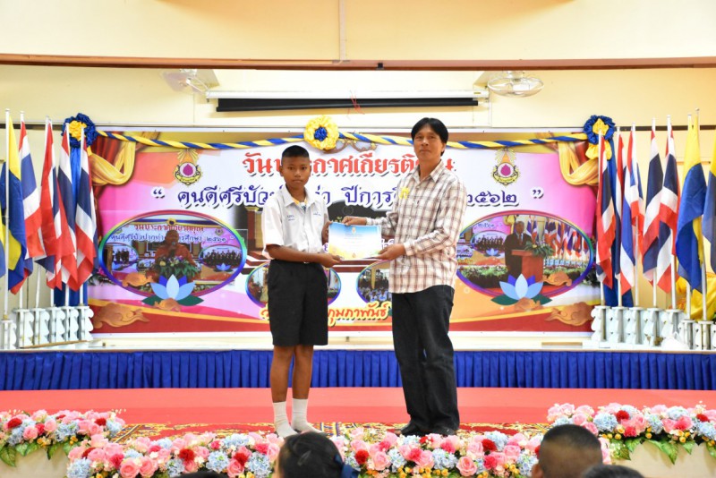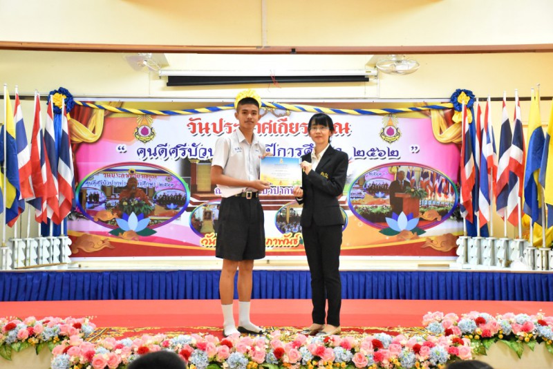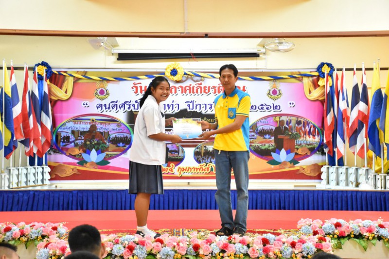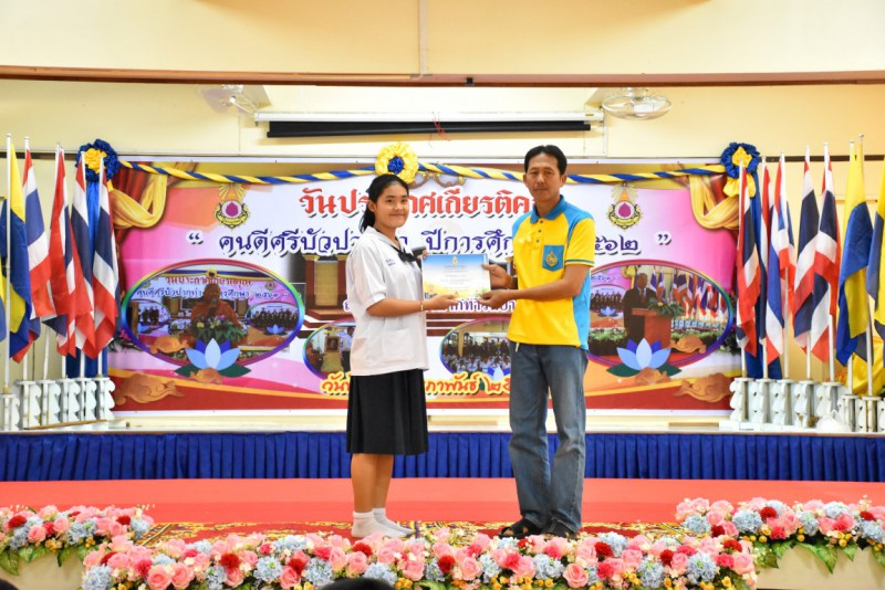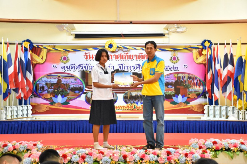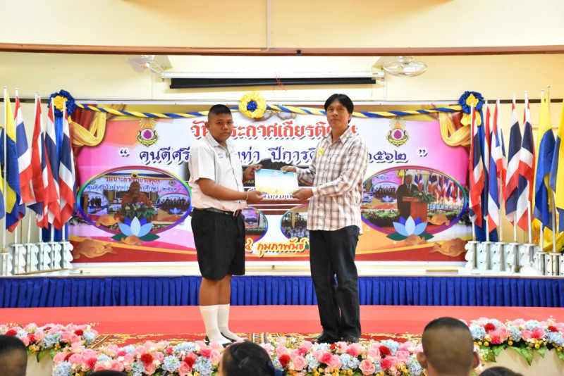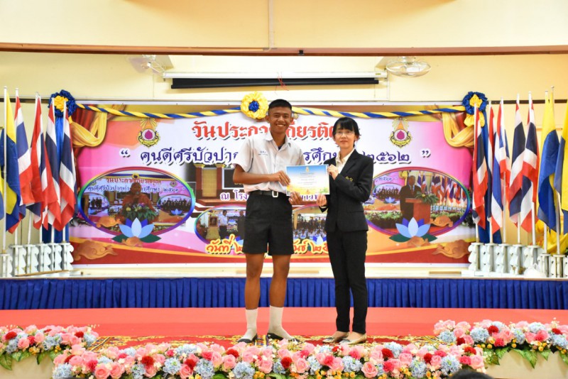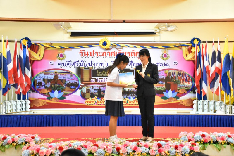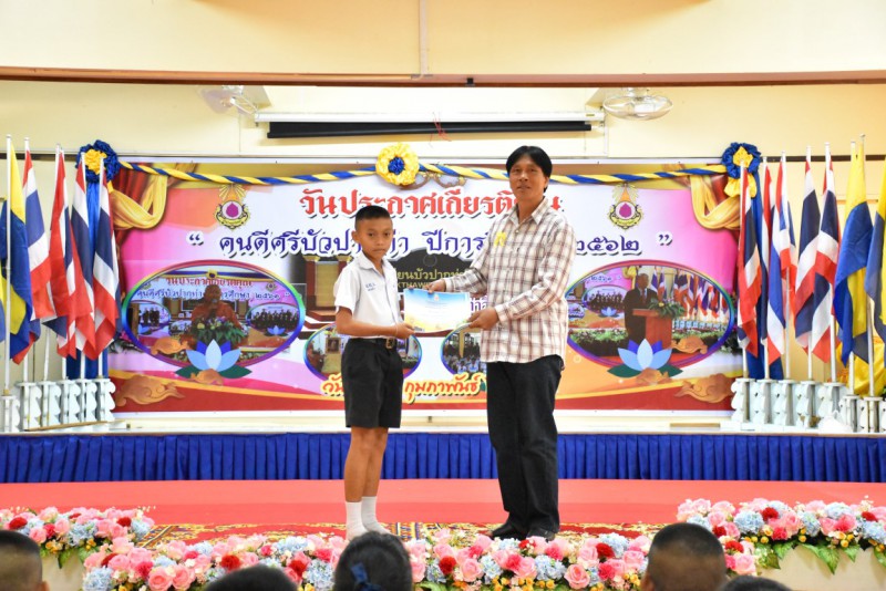 วันที่ 24 กุมภาพันธ์ 2563 เวลา 13.00-15.00 น. โรงเรียนบัวปากท่าวิทยา นำโดยผู้อำนวยการประเจิด อยู่สงค์ คณะครูและนักเรียน ร่วมกิจกรรมวันประกาศเกียรติคุณ "คนดีศรีบัวปากท่า ปีการศึกษา 2562" โดยมีครูและนักเรียนของโรงเรียนบัวปากท่าวิทยา จำนวน 155 ราย ที่ได้รับการพิจารณาคัดเลือกให้เข้ารับรางวัลคนดีศรีบัวปากท่า ซึ่งแบ่งออกเป็นครูผู้รักษาวินัยดีเด่น จำนวน 6 ราย ครูผู้ปฏิบัติงานดีเด่น จำนวน 16 ราย ครูที่ปรึกษาดีเด่น จำนวน 7 ราย ครูที่ปฏิบัติการดูแลช่วยเหลือนักเรียนดีเด่น จำนวน 19 ราย ครูที่มีคุณธรรม จริยธรรมดีเด่น จำนวน 19 ราย ครูผู้สร้างนวัตกรรมการเรียนการสอนดีเด่น จำนวน 2 ราย นักเรียนที่มีผลการเรียนดีเด่น จำนวน 4 ราย นักเรียนที่สร้างชื่อเสียงให้กับโรงเรียน จำนวน 27 ราย นักเรียนที่มีคุณธรรม จริยธรรมดีเด่น จำนวน 44 ราย นักเรียนผู้บำเพ็ญประโยชน์ดีเด่น จำนวน 40 ราย นักเรียนผู้นำดีเด่น จำนวน 11 ราย รวมถึงรางวัลประเภทห้องเรียนดีเด่น ประเภทกลุ่มสาระการเรียนรู้ดีเด่น ประเภทศิษย์เก่าดีเด่น ประเภทชุมชนที่สนับสนุนการศึกษาดีเด่น และประเภทคณะกรรมการสถานศึกษาดีเด่น เพื่อส่งเสริมให้ครูและนักเรียนปฏิบัติตนเป็นแบบอย่างที่ดีให้กับบุคคลอื่น และประกาศเกียรติคุณ ครูและนักเรียนที่ทำคุณงามความดีให้เป็นแบบอย่างที่ดีแก่ชุมชนและสังคม |