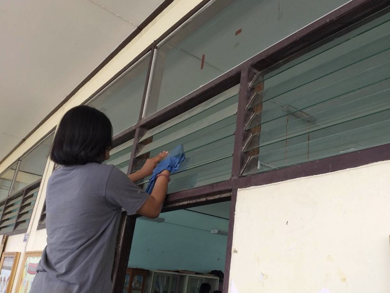 การทำความสะอาดโรงเรียนเพื่อเตรียมความพร้อมก่อนเปิดภาคเรียน