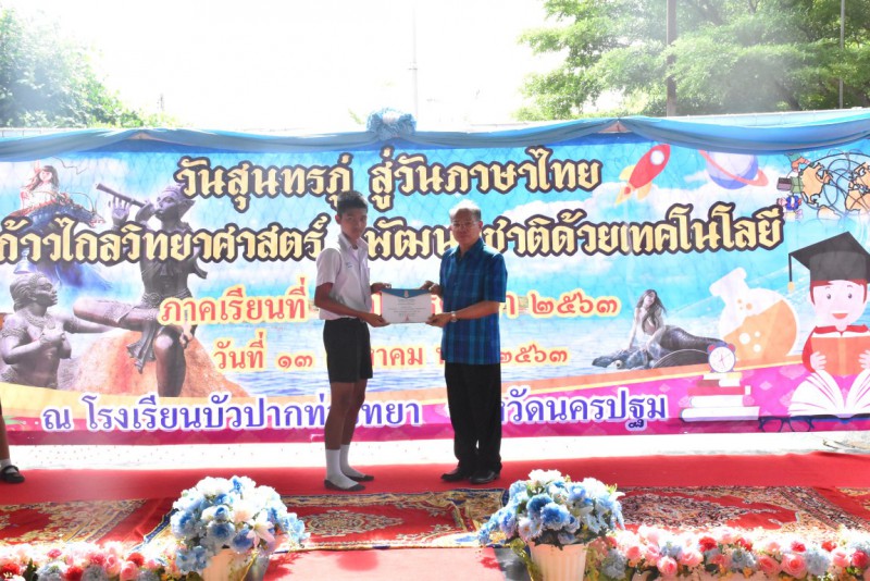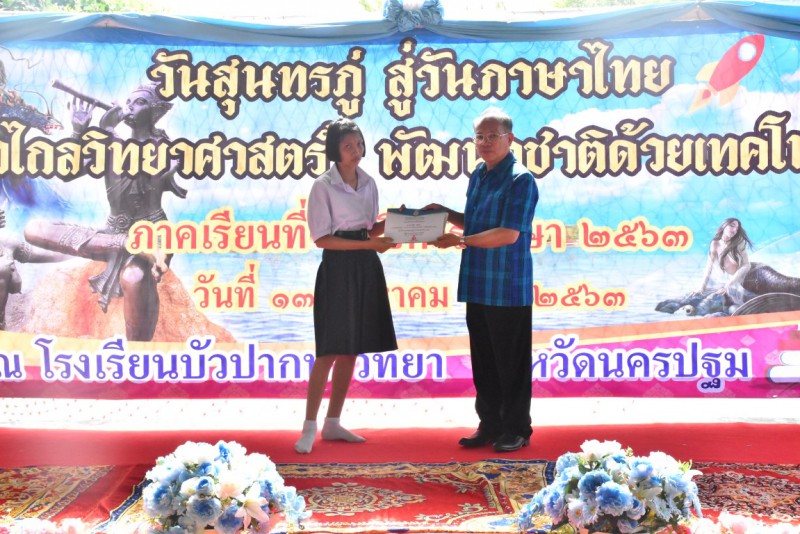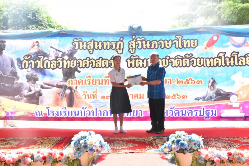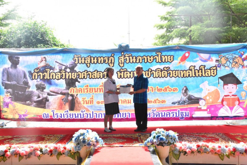 วันที่ 13 สิงหาคม 2563 เวลา 13.00-16.00 น. โรงเรียนบัวปากท่าวิทยา นำโดยผู้อำนวยการประเจิด อยู่สงค์ คณะครู และนักเรียน ได้จัดกิจกรรม "วันสุนทรภู่สู่วันภาษาไทย ก้าวไกลวิทยาศาสตร์ พัฒนาชาติด้วยเทคโนโลยี" โดยเป็นการบูรณาการระหว่างกลุ่มสาระ ซึ่งมีกิจกรรมการประกวดคัดลายมือ การประกวดคำขวัญ การประกวดวาดภาพวรรณคดีไทย ของกลุ่มสาระการเรียนรู้ภาษาไทย และการแข่งขันตอบปัญหาวิทยาศาสตร์ การประกวดคำขวัญ การประกวดวาดภาพวิทยาศาสตร์และเทคโนโลยี ของกลุ่มสาระการเรียนรู้วิทยาศาสตร์และเทคโนโลยี รวมถึงการประกวดการแต่งกายตัวละครวรรณคดีไทยรีไซเคิล โดยการจัดกิจกรรมสำเร็จลุล่วงไปได้ด้วยดีเพราะความร่วมมือจากคณะครูและนักเรียนเป็นอย่างดี |